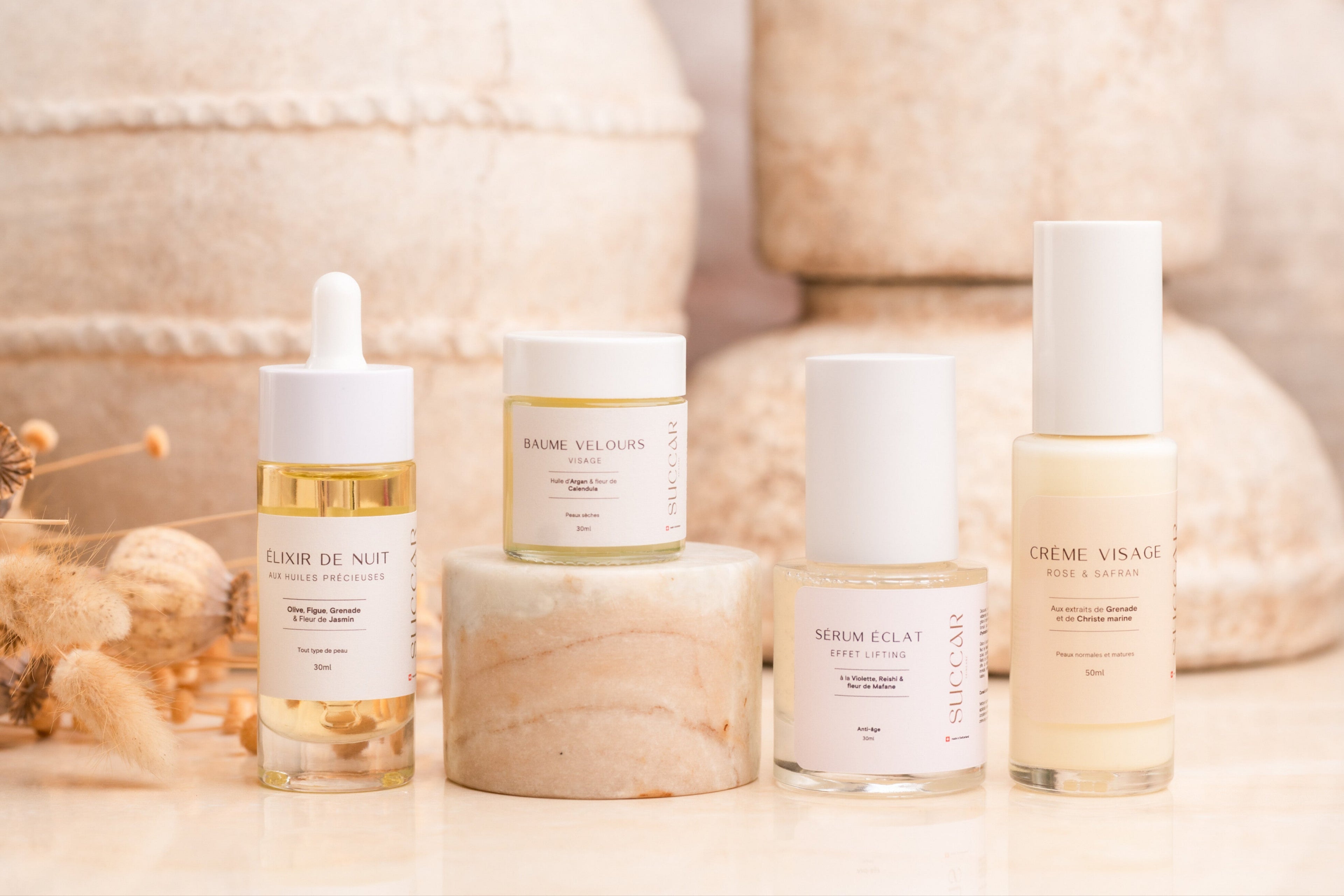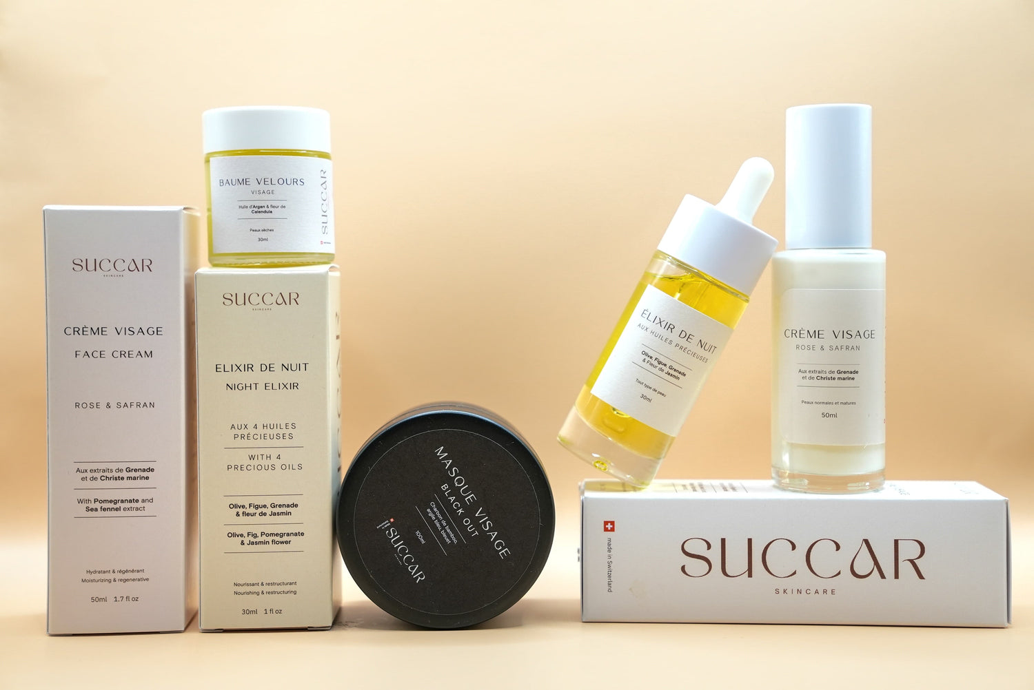 Founded in Switzerland, Succar skincare was born from the desire to rediscover beauty through nature and authenticity. We know how challenging it is to find clean and effective skincare that truely heals your skin. Our goal is to offer you professional formulas highly concentrated in powerful natural active ingredients, while perpetuating ancestral beauty secrets.